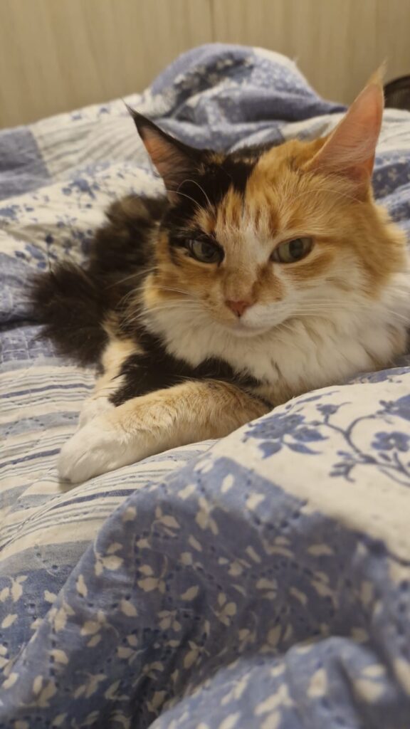 Sou a Meggie, a filha do meio. Muito desconfiada dos humanos… mas adoro um carinho. Adoro conversar.